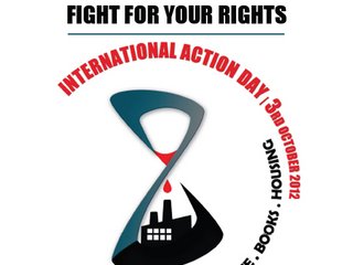In allegato il primo manifesto e l'opuscolo per la Giornata mondiale di mobilitazione indetta dal WFTU per il 3 ottobre 2012, in italiano, inglese e spagnolo.