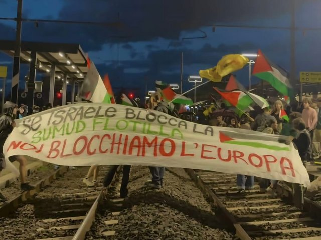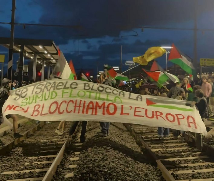 Dopo l’enorme riuscita dello sciopero generale di lunedì 22 settembre, per il quale hanno risposto in tantissimi paralizzando il Paese alla parola d’ordine “blocchiamo tutto”, Israele ha portato a termine il suo nuovo attacco con l’obiettivo di bloccare la fotilla; alcune imbarcazioni sono state danneggiate e l’obiettivo era compromettere la missione umanitaria, inoltre le imbarcazioni battevano bandiera italiana, inglese e polacca, quindi si tratta di fatto di un atto di guerra in piena regola anche nei confronti del nostro Paese.