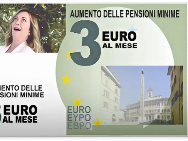 Una bugia colossale, di fronte ad una realtà ben diversa, visto che la prossima legge di bilancio destina 3 (TRE) euro alla rivalutazione delle pensioni minime, da 614,77 a 617,9, rispetto ad un costo della vita che dal 2021 ad oggi è cresciuto del 16,6%.
