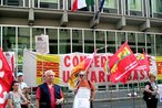 Oggi, 20 giugno, dalle 9,00 del mattino un centinaio di lavoratori delle OOSS. CONFEDERAZIONE UNITARIA DI BASE-CUB,- CONFEDERAZIONE COBAS ,- SDL - INTECATEGORIALE hanno partecipato al presidio sotto la sede dell'Unione Industriale di Torino, per chiedere aumenti dei salari, sicurezza nei luoghi di lavoro, lotta alla precarietà,per la democrazia sindacale.