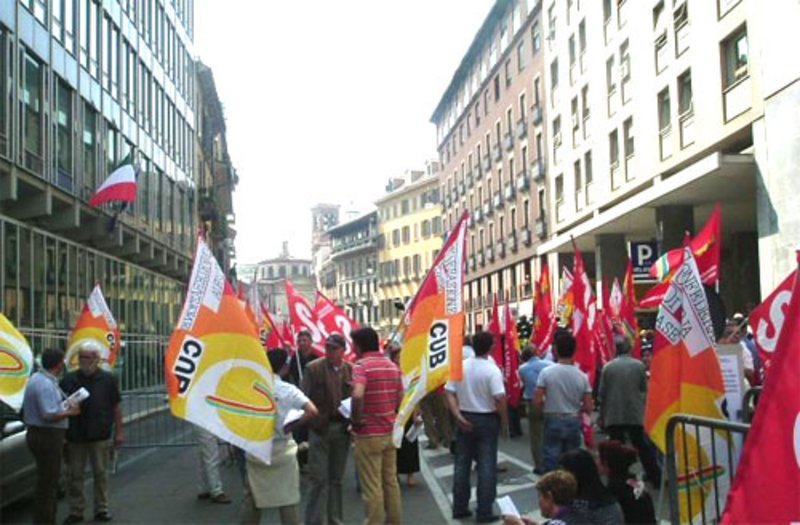 Dalle 10.30 si è tenuta la manifestazione, promossa da CUB, Cobas ed Sdl, davanti alla sede della Confindustria: un centinaio di delegati, lavoratrici e lavoratori hanno portato sotto le finestre del padronato la propria opposizione alle richieste di Confindustria e alla manovra finanziaria del Governo, esprimendo con chiarezza l’intento dei lavoratori di passare all’attacco per rivendicare salario, sicurezza sul lavoro, lotta alla precarietà e continuità del reddito, democrazia nei luoghi di lavoro, difesa del sistema pensionistico pubblico e una nuova scala mobile.