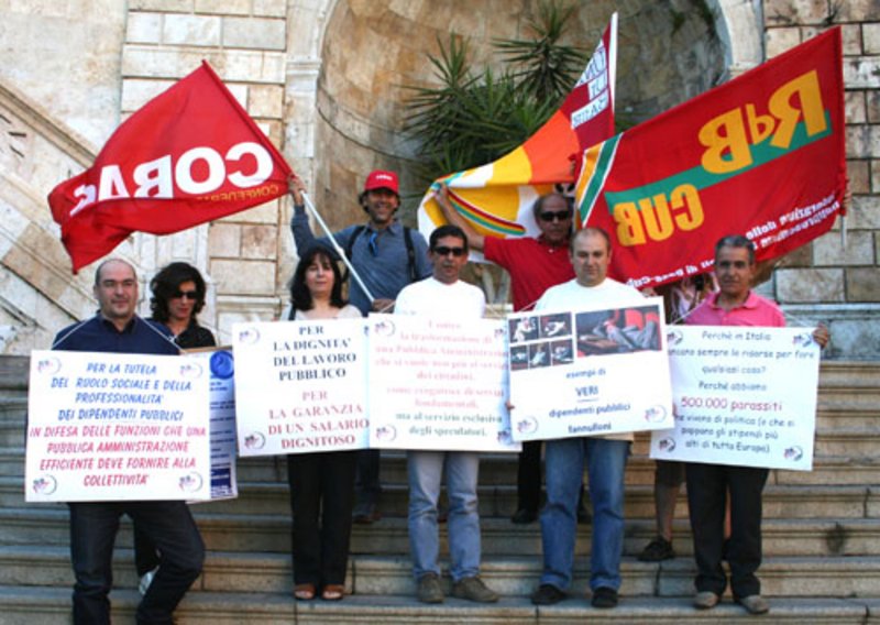 Oltre venti manifestazioni in tutta Italia, e migliaia di lavoratori in piazza per dire un sonoro «no» alle politiche del governo. Ma non solo. Nella giornata nazionale di mobilitazione indetta dai sindacati di base (RdB Cub, Cobas e SdL) a sostegno della piattaforma unitaria deliberata lo scorso maggio, i lavoratori hanno chiesto più salario, sicurezza sul lavoro, lotta alla precarietà, e democrazia sindacale. A Roma, 2 mila lavoratrici e lavoratori pubblici, con una grande partecipazione tra i comparti dell'università e della ricerca, hanno manifestato davanti alla sede del ministero della funzione pubblica, per ribadire il «totale dissenso con la visione espressa dal ministro Brunetta»: «L'aumento della qualità deriva da uno stop netto alle esternalizzazioni e agli appalti, mentre è inaccettabile mandare a casa migliaia di precari che per anni hanno garantito il funzionamento di tanti servizi». Il ministero ha poi ricevuto una delegazione sindacale, assumendo l'impegno ad aprire un tavolo per affrontare il problema dei precari. Un'altra delegazione è stata ricevuta a palazzo Chigi: i sindacati hanno consegnato la piattaforma unitaria e chiesto un tavolo permanente di consultazione. Ora il sindacalismo di base annuncia un grande sciopero generale in autunno, a sostegno della piattaforma unitaria.