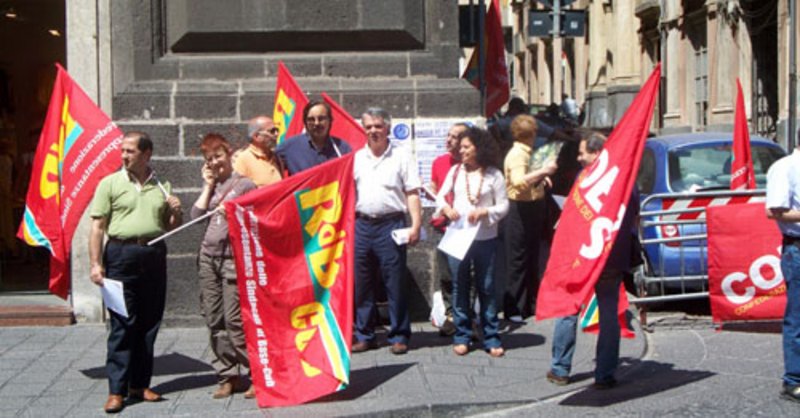 Presidio della RdB/CUB Pubblico Impiego e dei COBAS alla Prefettura, nella centralissima via Etnea