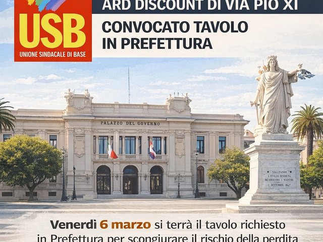 È stato convocato per domani, venerdì 6 marzo, il tavolo in Prefettura richiesto nei giorni scorsi dall’USB per affrontare la situazione dei lavoratori dell’ex punto vendita ARD Discount di via Pio XI. Al confronto, oltre alla nostra organizzazione sindacale, sono state invitate a partecipare anche le aziende interessate, Gicap e Iracarni, insieme all’Ispettorato del Lavoro, all’INPS e al Sindaco di Reggio Calabria.